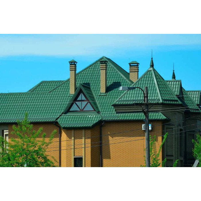Металлочерепица Grand Line Kvinta Uno (Квинта Уно) 0,5 Velur RAL 6005 Зеленый мох