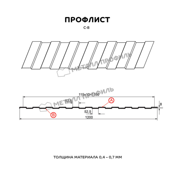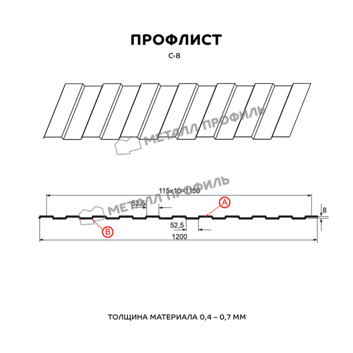 Профлист Металл Профиль С-8 0,45 Полиэстер RAL 3009 Красная окись | B