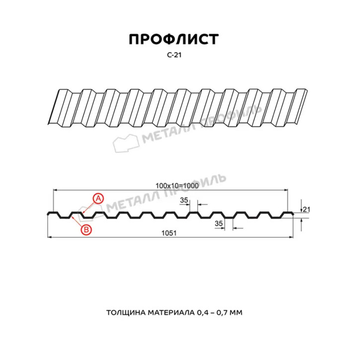 Профлист Металл-Профиль С-21 Полиэстер 0.7 мм RAL 6005 Зеленый мох