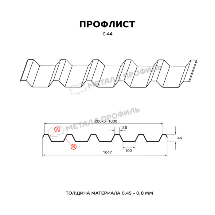 Профлист Металл-Профиль С-44 NormanMP 0.5 мм RAL 8004 Коричневая медь