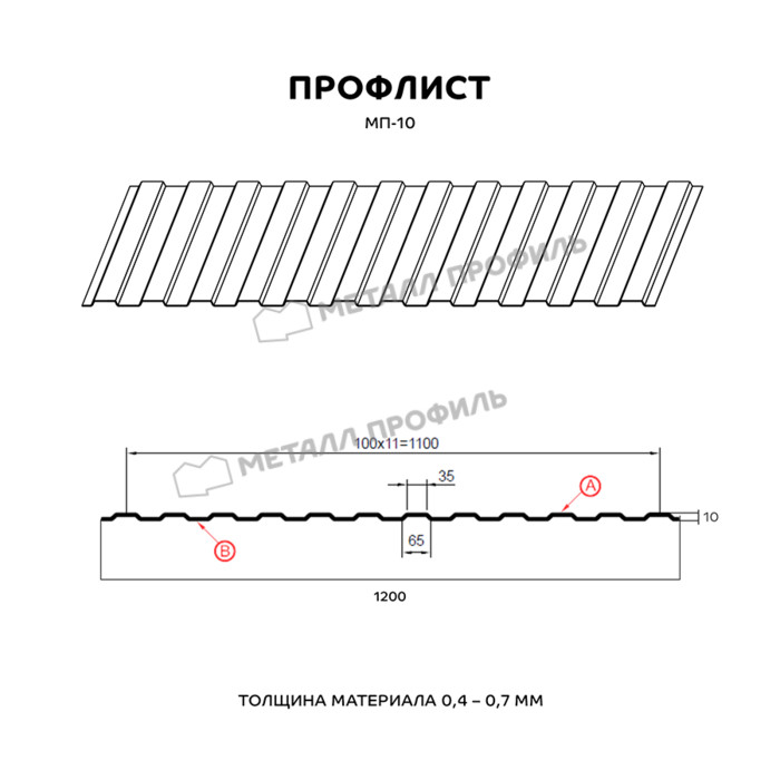 Профлист Металл Профиль МП-10 0,5 NormanMP RAL 9006 Белый алюминий | A